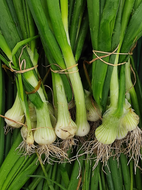 Cébettes cultivés à Landry vendus en botte ! Ces cébettes sont cultivés à Landry en Savoie et certifiés Agriculture biologique.